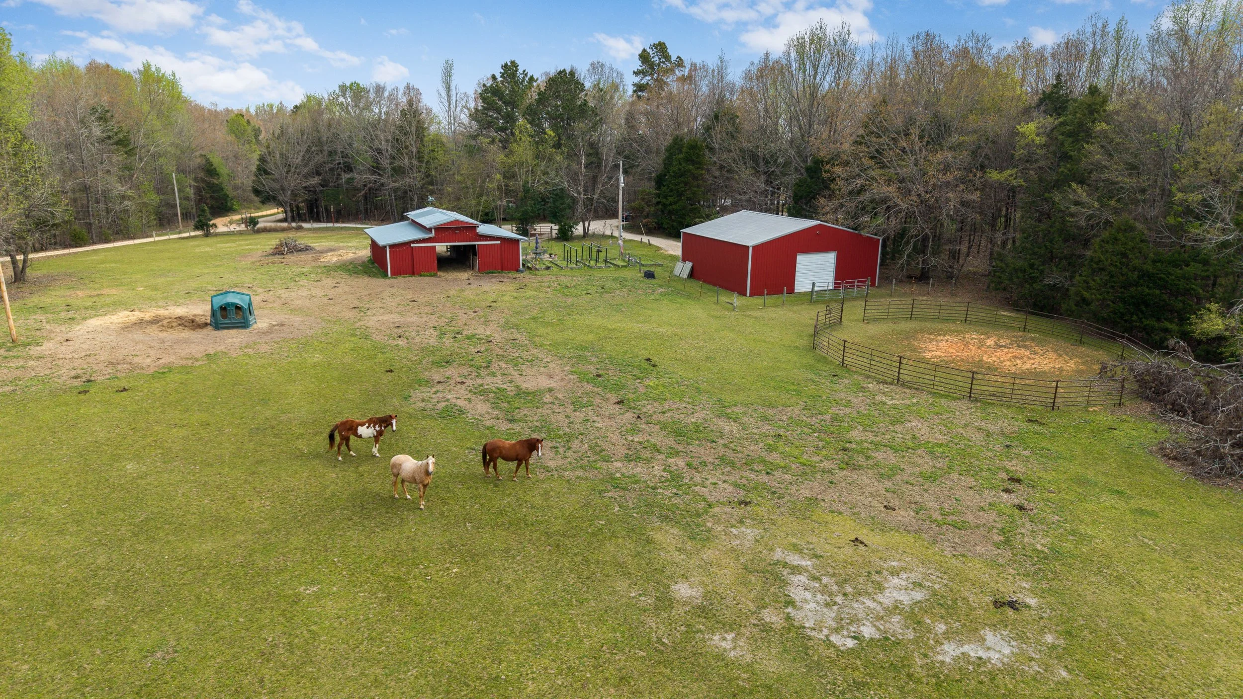 Wonderhorse Farm is well-equipped with a variety of amenities, including multiple water features, barns, raised garden beds, and substantial equestrian infrastructure. The pasture and improvements also lend themselves well to a hobby cattle or livestock operation. With ample road frontage and several scenic building sites, the property offers excellent potential for additional homes or future division—ideal for extended family, friends, or investment opportunities.